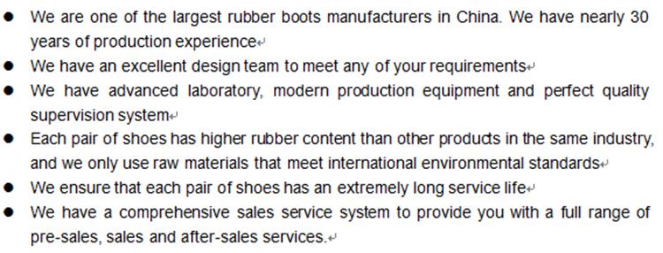 Ano, to je naše výhoda. Mnoho obtížných technologií výroby speciálních ochranných bot není v jiných továrnách k dispozici. Máme téměř 30 let zkušeností s výrobou.